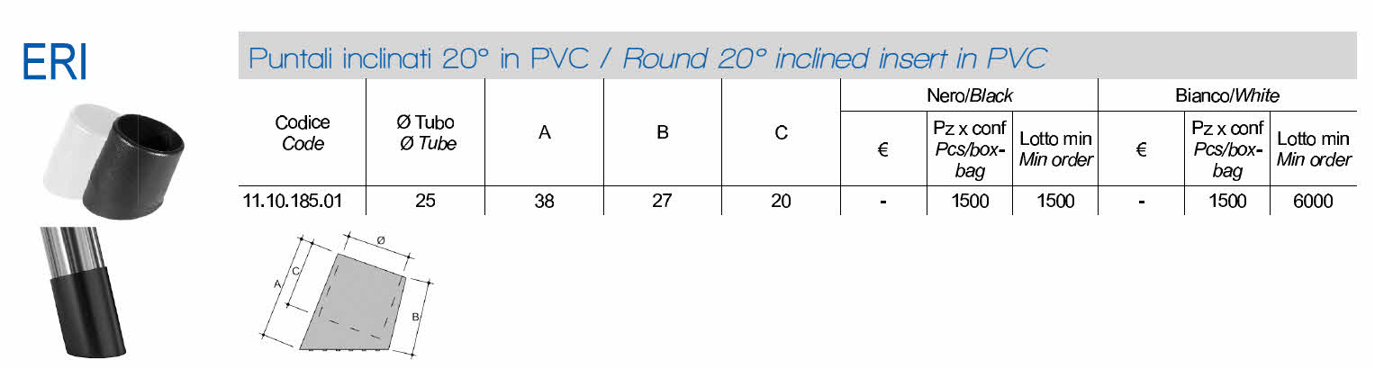Home / Articoli per reti e letti / Tappo Puntale Esterno Inclinato 20° In PVC Modello ERI